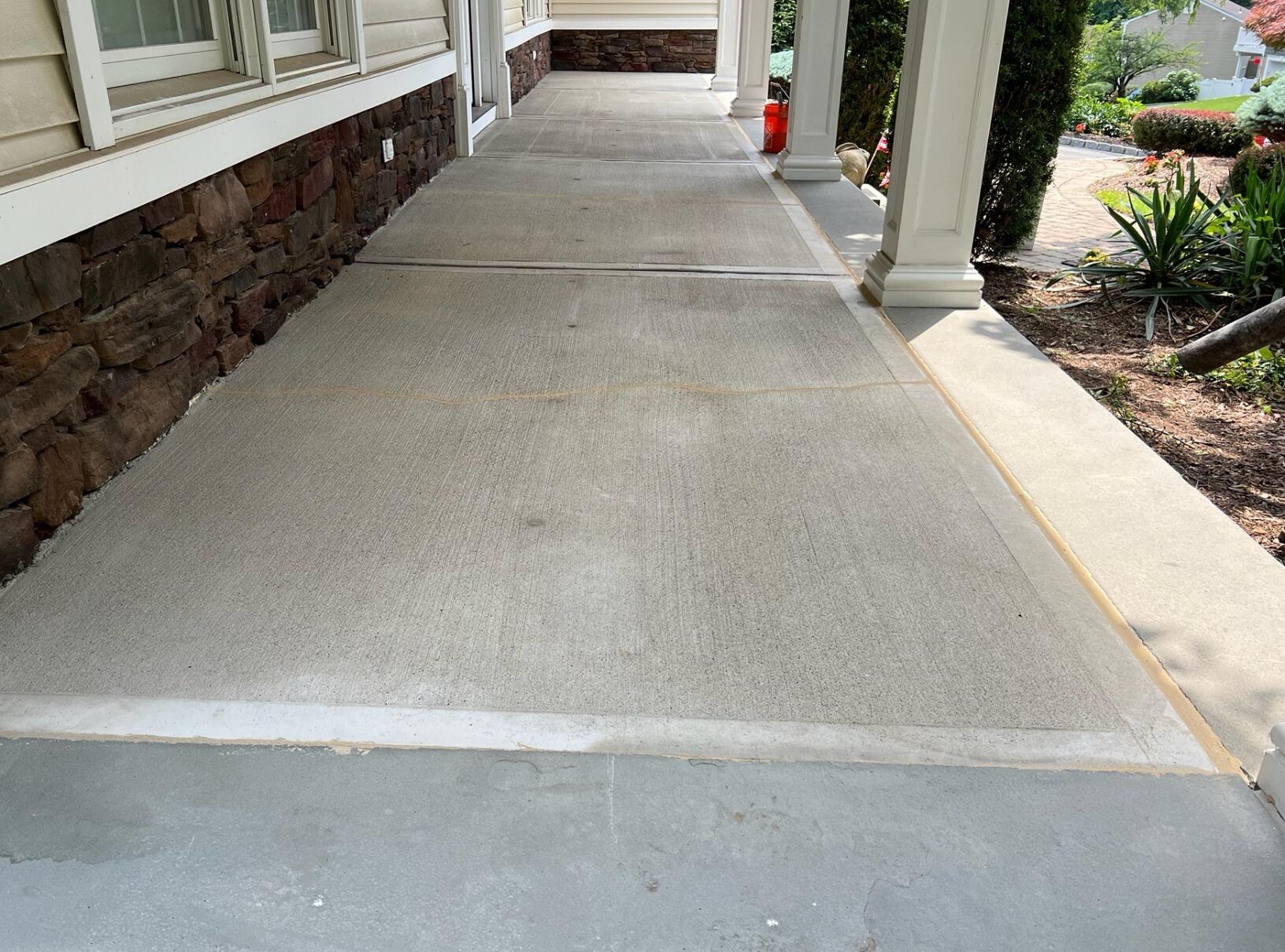 A homeowner in Oradell, NJ sought our services to help repair the concrete on their front porch. Cracking and sinking, the concrete posed tripping hazards and took away from the front entrance appeal of the home. Our PolyLevel Foam Injection and NexusPro Joint Sealant were used to repair the concrete, leaving the homeowner with a newly leveled and safe porch.