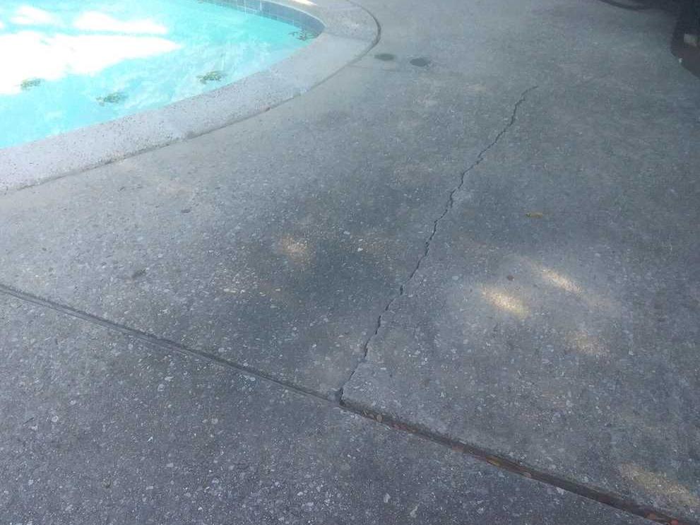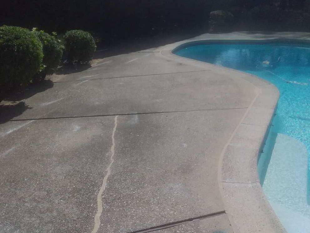 This concrete pool area was sinking and settling due to the weak soil underneath the slab. When soil becomes too wet, too dry or poorly compacted, it becomes weak and can no longer support the weight of heavy concrete causing it to sink.