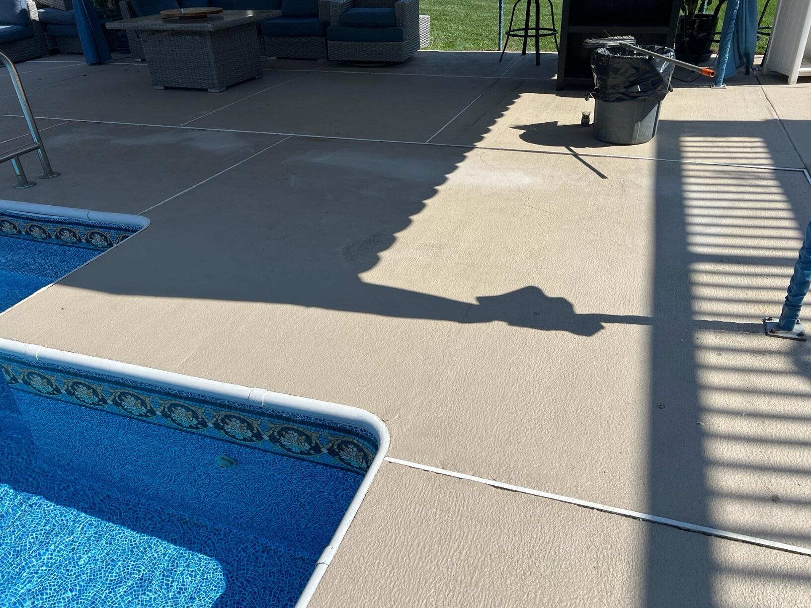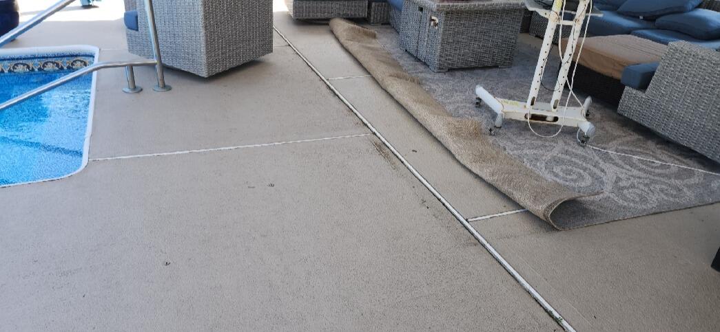 This beautiful Normandy Beach Patio was experiencing some sinking concrete slabs around the pool area, causing some of the slabs to separate. The homeowner contacted Quality 1st Basement Systems when finding out that the slabs could simply be raised and then sealed without having to replace the entire slab! PolyLevel was pumped into the slab, raising it up to level and then Joint Seal was applied to fill all the voids.
